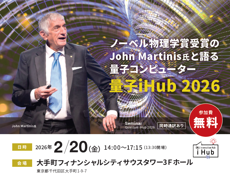 DBJ iHub「ノーベル物理学賞受賞のJohn Martinis氏と語る量子コンピューター 量子iHub2026」と題してシンポジウムを開催いたします。 日時 : 2026年2月20日(金)14:00-17:15(13:30開場) 主催 : 株式会社日本政策投資銀行(DBJ)、国立研究開発法人産業技術総合研究所、一般財団法人日本経済研究所 ...