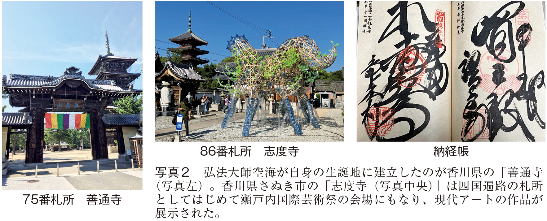 また遍路の旅においては、道中そこかしこに存在する日本の原風景を思わせる豊かな自然や季節毎に異なる山海の幸(香川県もうどんだけじゃない!)、現代アートや歴史的スポットなどを巡り、遍路だけではない四国の魅力に触れることもお勧めである。筆者はこれらと遍路巡りを合わせて行うことによって、日常生活で鈍りがちな五感を取り戻すべく、心身のリトリートを図っている。